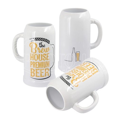 These beer mugs are available in 0.25 L Gray and 0.25 L White, 0.5 L Gray and 0.5 L White, and 1 L White, and sold in cases of 18 pieces.