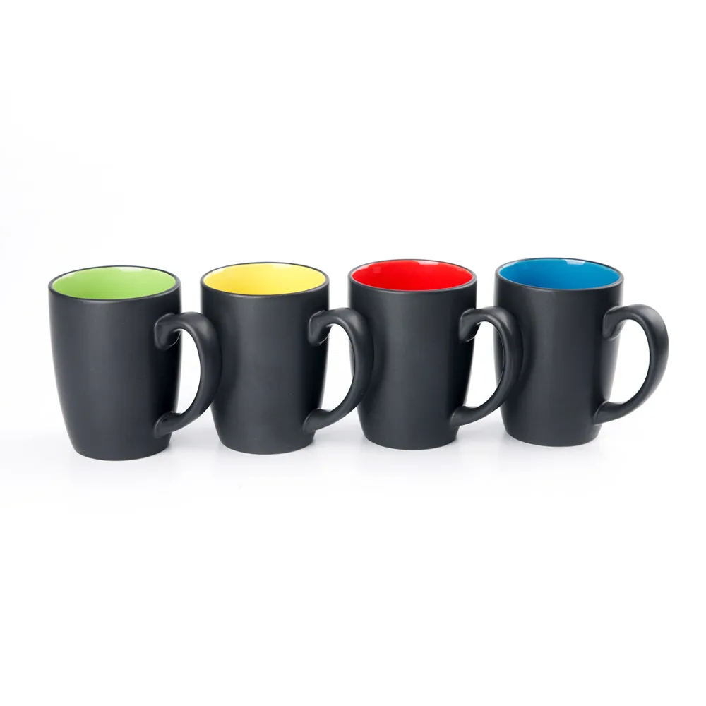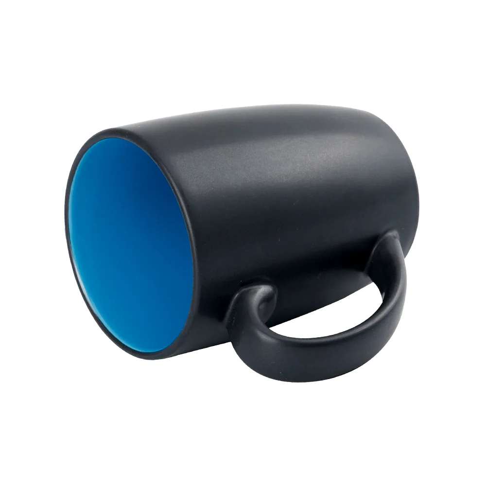 This stylish ceramic mug features a sleek tapered design with a 12oz capacity, perfect for any beverage. Crafted from premium ceramic, it offers excellent heat retention, a smooth finish, and a slip-resistant matte exterior. Available in four elegant inner colors paired with a classic black exterior, it suits any setting. Personalize it with laser engraving or UV DTF printing for a durable, fade-resistant design.