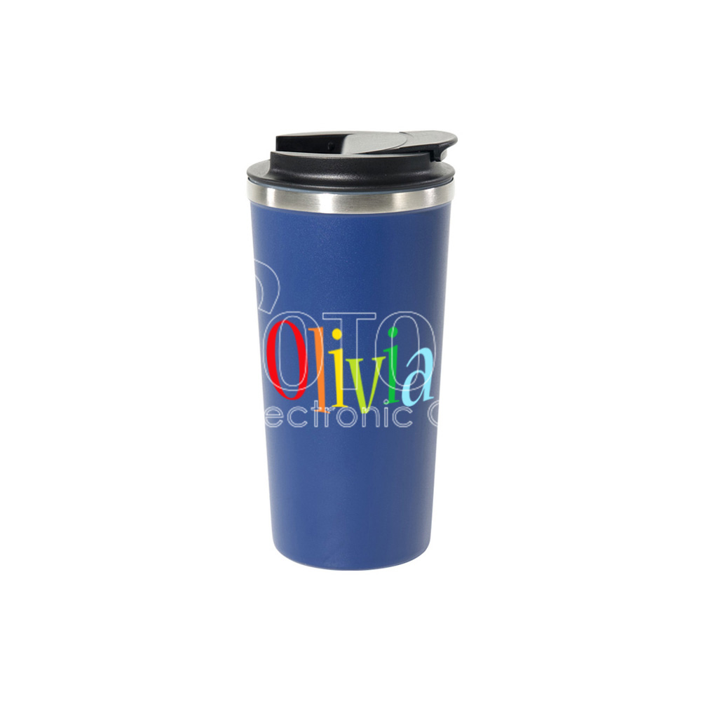 This 16 oz blank stainless steel travel mug allows you to customize by laser engraving and UV printing, so you can add any logo, text or pattern on it to create various stylish custom travel mugs. The mug comes with a leak-proof flip-top lid. Moreover, it has double-wall vacuum construction to keep your drinks hot or chilled for hours. All these user-friendly and customizable features make this travel mug an excellent fashion drinkware option for indoor & outdoor use.