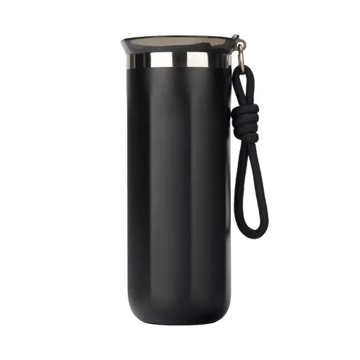 Introducing the Powder Coated Stainless Steel Coffee Cup with Strap Lid. Crafted from food-grade stainless steel with double-wall vacuum insulation, it keeps drinks hot or cold for hours. The cup mouth switch can be opened by sliding, with a convenient flip straw perfect for travel. It includes a sturdy carrying strap and fits most car cup holders. Available for customization via laser engraving, UV printing, or UV DTF, this trendy tumbler is the ideal choice for daily commuting.