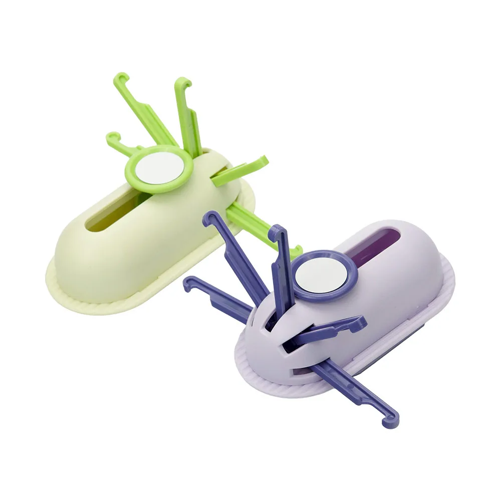 Made of high-strength ABS and aluminum sheet, the Retractable Plastic No-Drill 5-Claw Hooks offer a powerful, durable, and heavy-duty storage solution for your home. The retractable design saves space while keeping five hooks neatly organized when not in use. No-drill adhesive backing works on smooth surfaces like glass, tiles, metal, and walls (not for painted walls or wallpaper). Available in purple and green. Custom printing on the slider is available for any image, logo, or QR code—ideal for branded merchandise and corporate gifting.