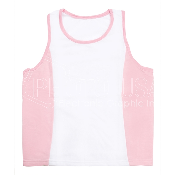 Sleeveless tank top makes children feel free and easy in summer. The dynamic colors bring their summer life and activities loads of vitality. All of them can be customized by sublimation printing any logo or preferred images, which makes them great for personal use, as well as sport teams and promotion events.