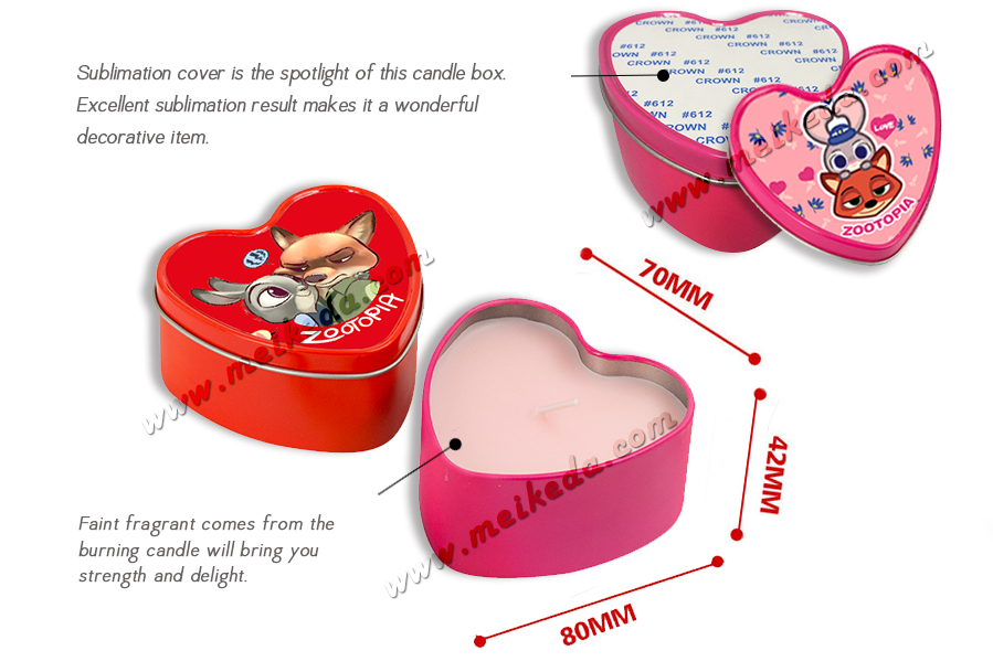 Metal tin box makes perfect candle holder, very cute and romantic. The burning candle will make the whole house full of faint fragrance, which would enable you to soak up a warm and cozy atmosphere, imbuing you with strength and delight. It’s a great choice for a dinner party, birthday party or any other warm and sweet occasions.